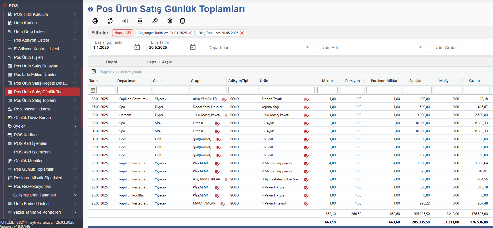 **Pos Ürün Satış Günlük Toplamları**